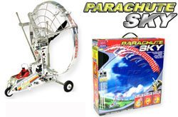 The Parachute Sky is a paraglider, a radio-controlled, battery-powered parachute with motor and wheels. The paraplane can steer left and right, climb, cruise, and descend. The large parafoil canopy will bring the parachute surfer gently back to earth. You'll have tons of fun with the Parachute Sky !